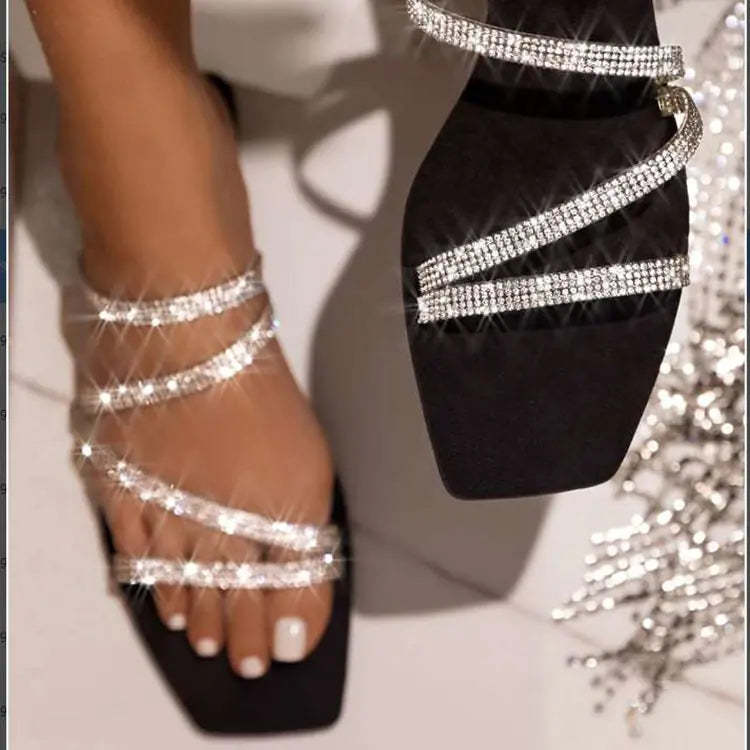 Diamond Flat Sandals – Rhinestone Beach Slippers
