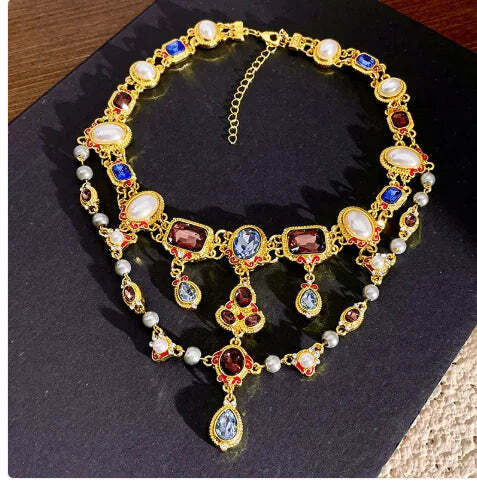 Color: colorful crystal tassel middle ancient necklace