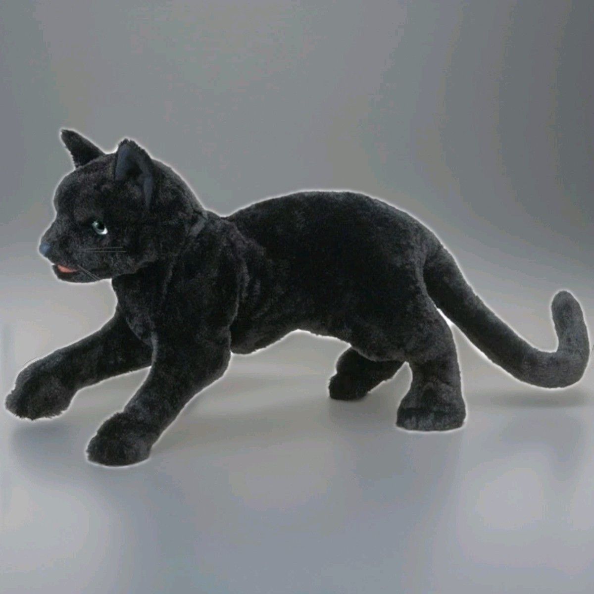Black Cat Full Body Folkmanis Realistic Movable Mouth Hand Puppet Plush 13"
