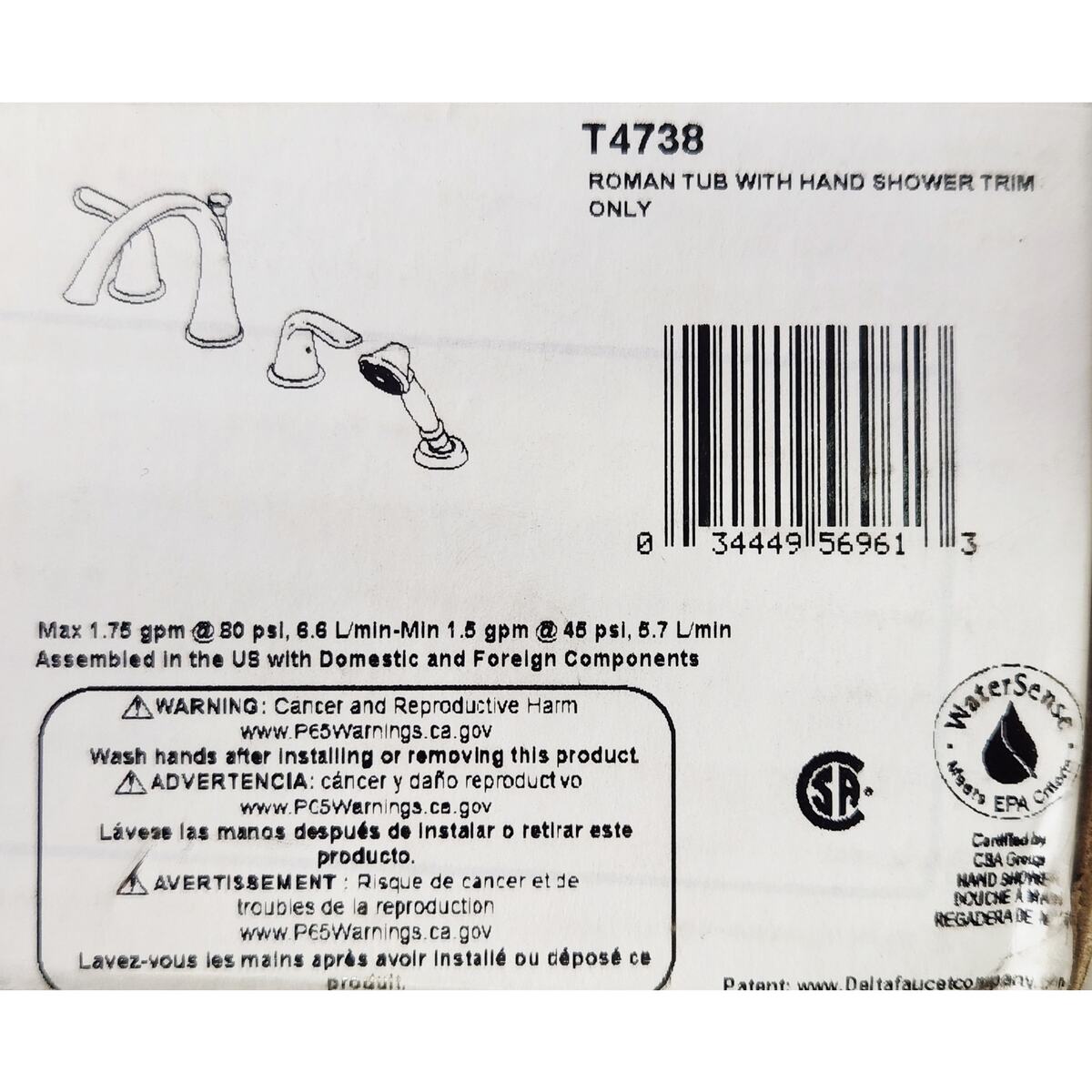 Tub Filler, Trim, Hand Shower, Mounting Hardware |