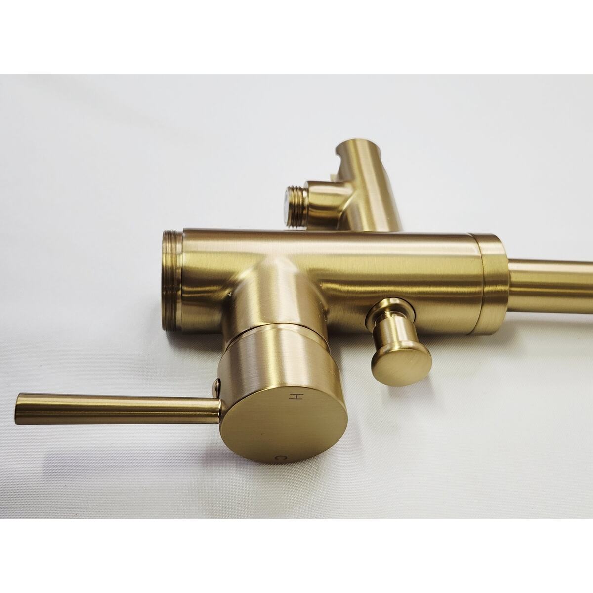 DreamLine FTHV4309X30 Havana Floor Mounted Tub Filler with Built-In Diverter - Includes Hand Shower - Brushed Brass