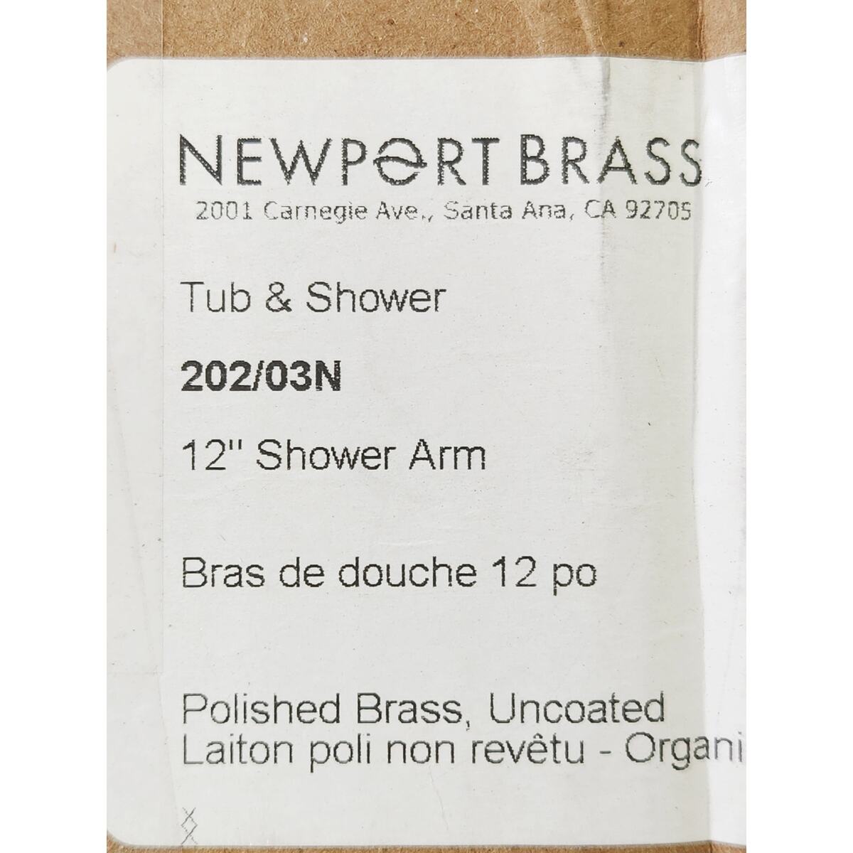 Newport Brass 202/03N Tub and Shower 12" Wall Mounted Shower Arm - Polished Brass Uncoated (Living)