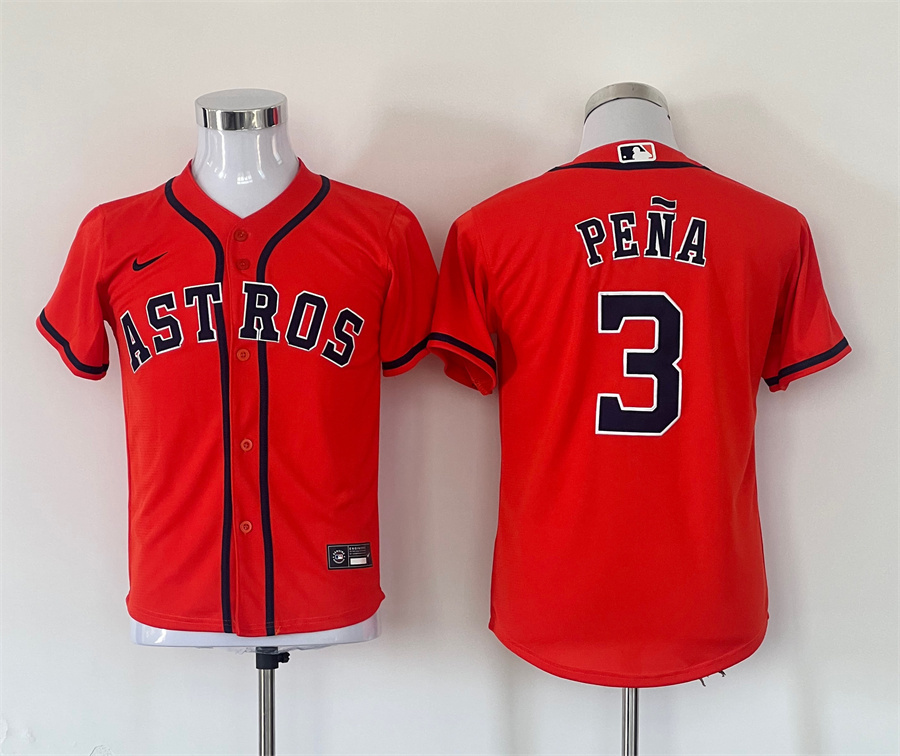 Men’s Jeremy Peña #3 Red Navy Trim Baseball Jersey Uniform