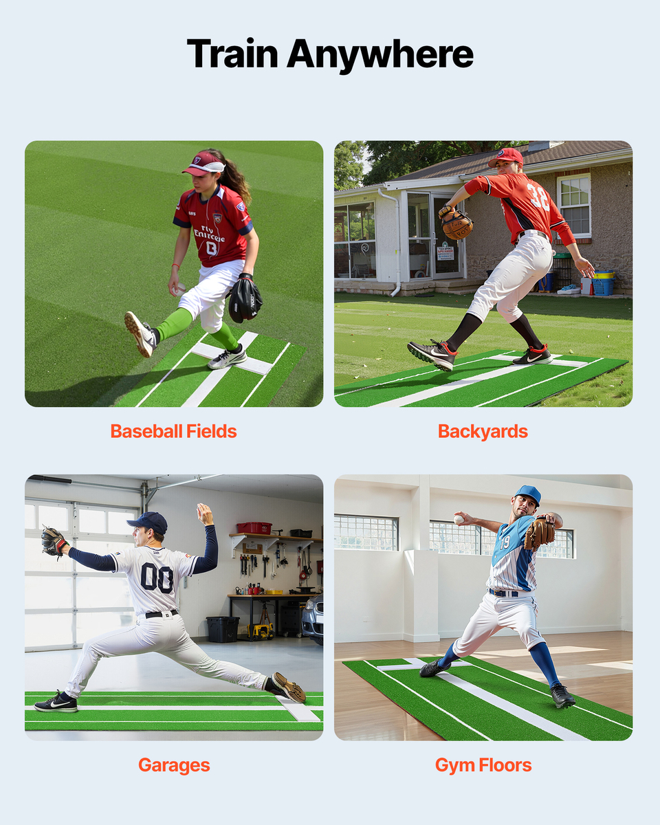 Versatile Usage: This softball pitching mat can be used both indoors and outdoors. It's ideal for training centers, home garages, playing fields, batting cages, gyms, and backyard practice
