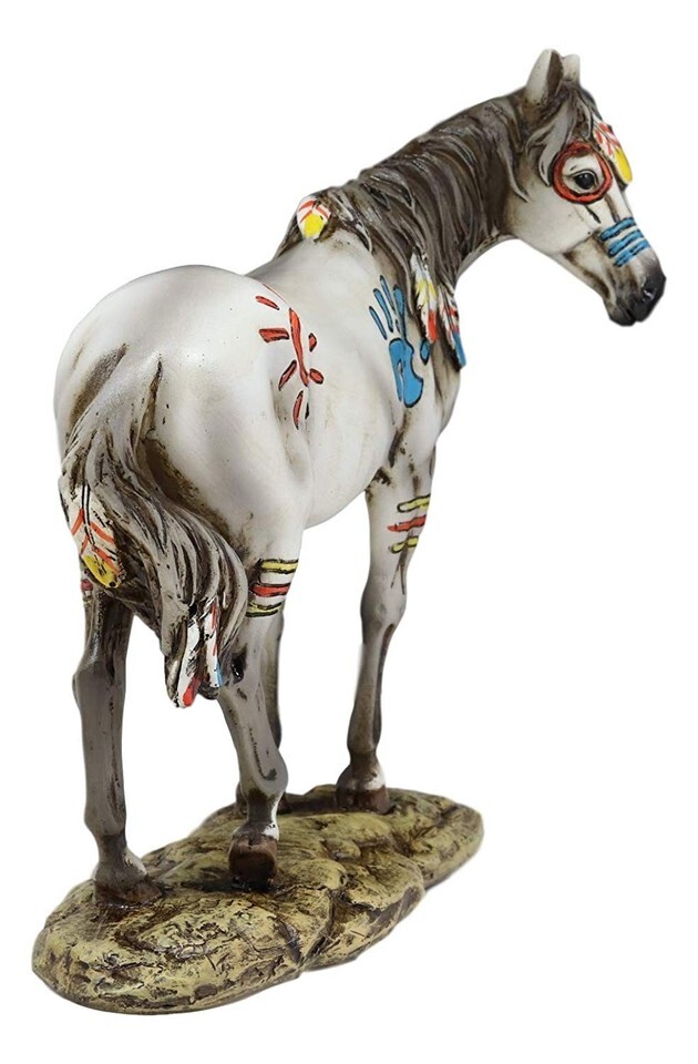 ? This Colorful Medicine Tribal Horse Statue is made of the highest quality resin, hand painted and polished individually.