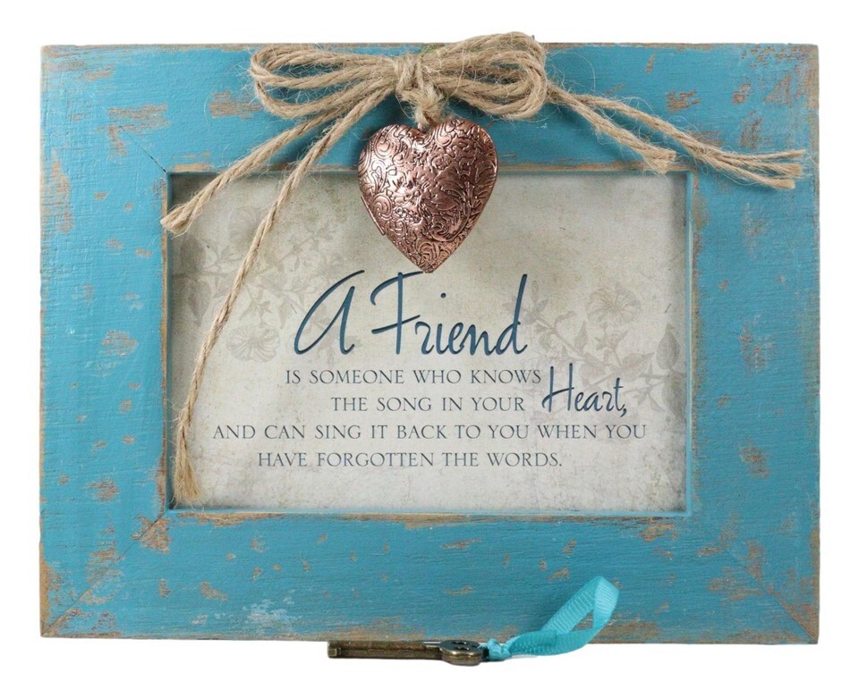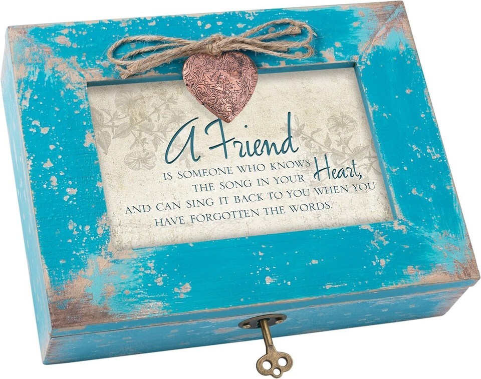 A Friend Knows The Song Of Your Heart Locket Heart Teal Wood Musical Trinket Box