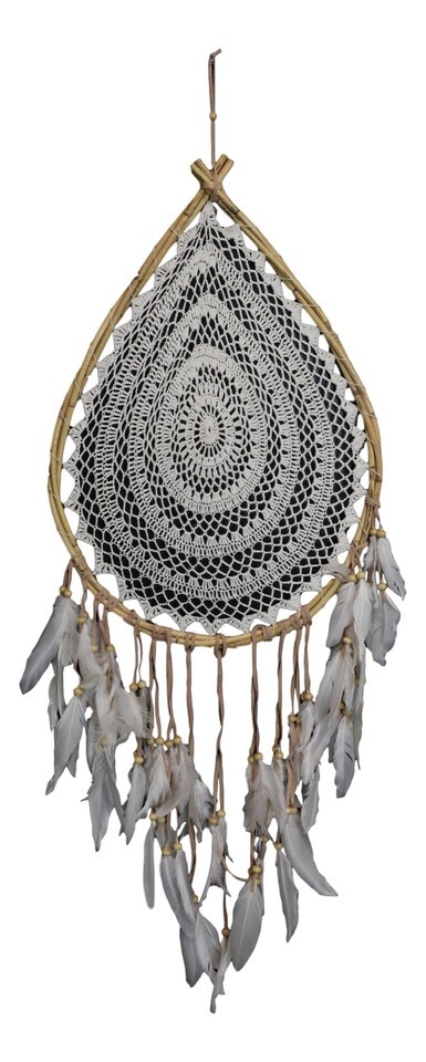 ? The beautiful chic macrame dream catcher is made of rattan, cotton rope, feathers, beads and soft tassels. Uniquely designed and handcrafted, it is ready to be the center of attention wherever you choose to hang it.