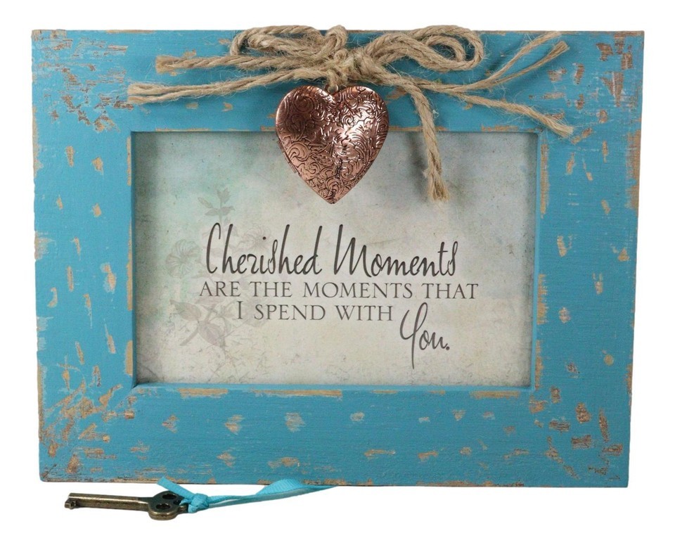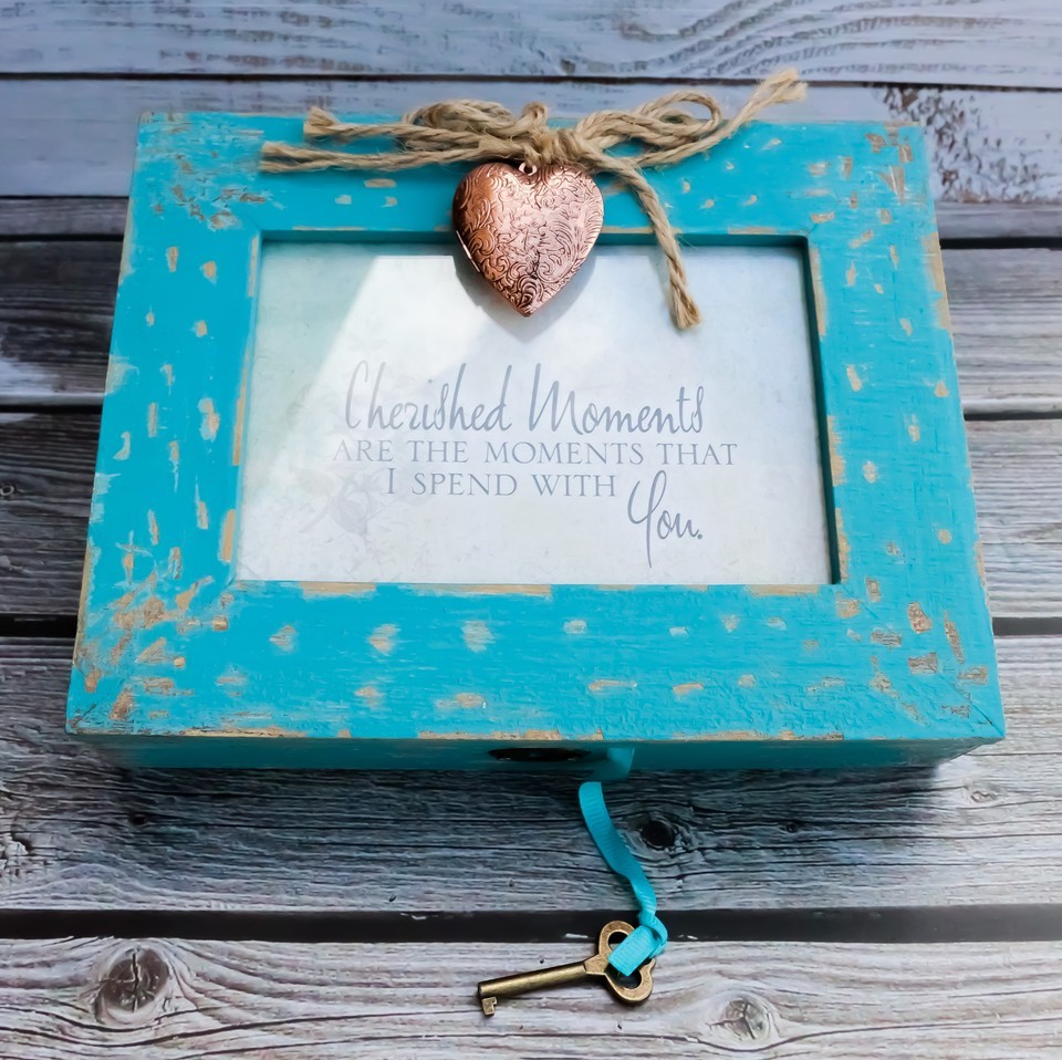 Cherished Moments I Spend With You Locket Heart Teal Wood Musical Trinket Box