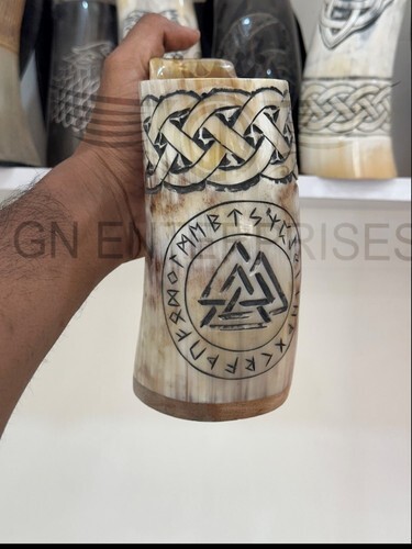 ? Elevate your drinking experience with this Viking Berserker Skull Drinkware! Designed with two focal points on both sides of a skull warrior with an iconic helmet with bison horns, the drinkware also features intricate celtic knotwork patterns all around the body surface. A truly breathtaking drinkware to display anywhere in your home or kitchen and an excellent gift for fans of Viking history as well as macabre skulls and the underworld.