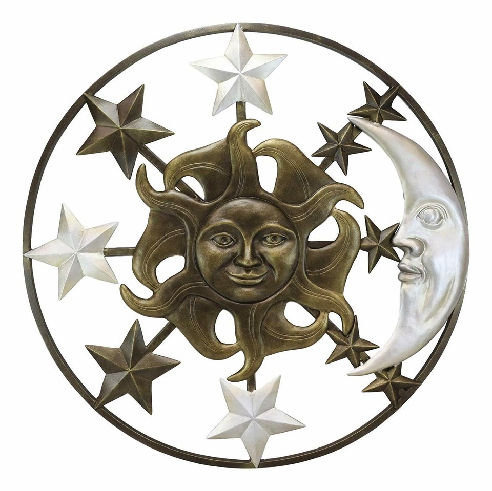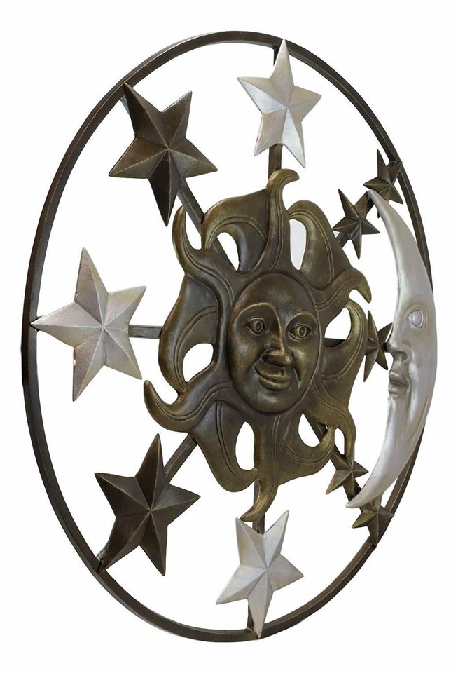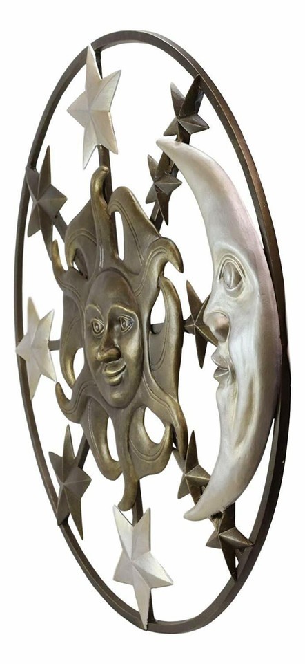 ? This Large Celestial Heavens Sun Moon And Stars Round Wall Plaque is made of aluminum metal, individually hand crafted, painted and polished. Color Tone may vary slightly from pictures.