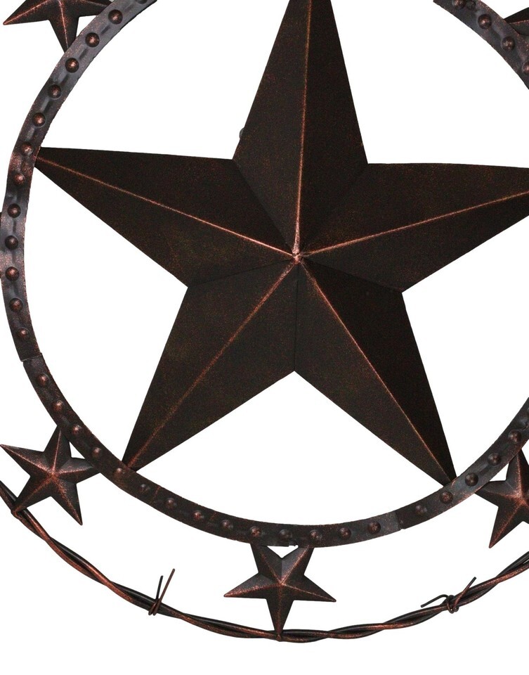 ? This Western Star Circle Wall Sign is made of aluminum, individually hand crafted, painted and polished to the finish of bronze. Color Tone may vary slightly from pictures.