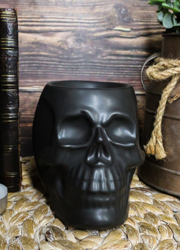 ? This ceramic skull oil burner is a unique way to melt your favorite wax melts and fragrance oils. The back of the skull has an opening to place the tealight candle, and three holes for ventilation. The light from the candle will illuminate the ventilation holes creating a soft backlight that enhances the entire item while in use. The soft glow of this light is excellent mood lighting, and elevates your space in a way that other oil burners can't.