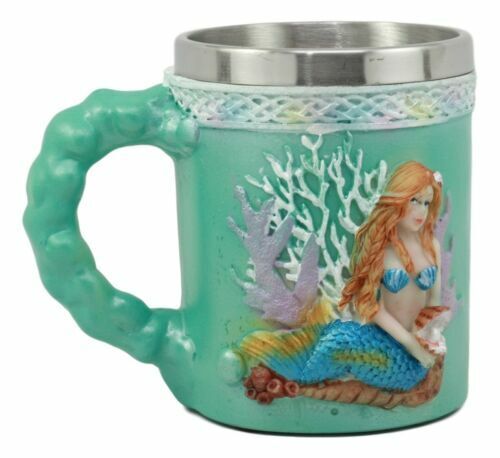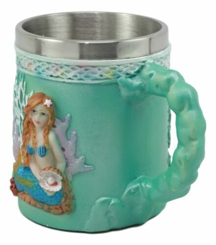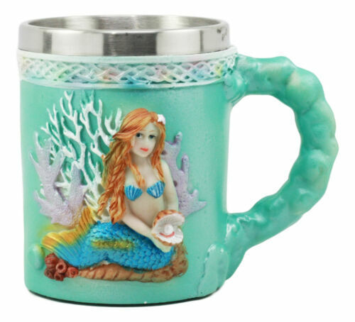 Ebros Turquoise Ocean Marine Coral Reef Mermaid With Pearl Mug 12oz Nautical