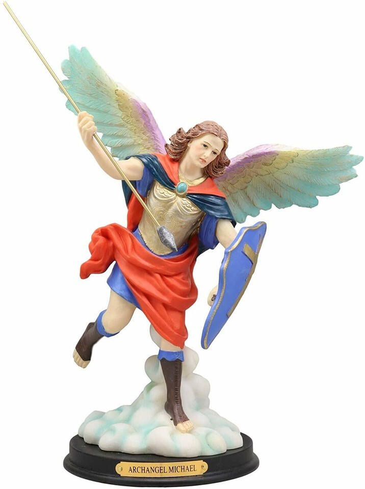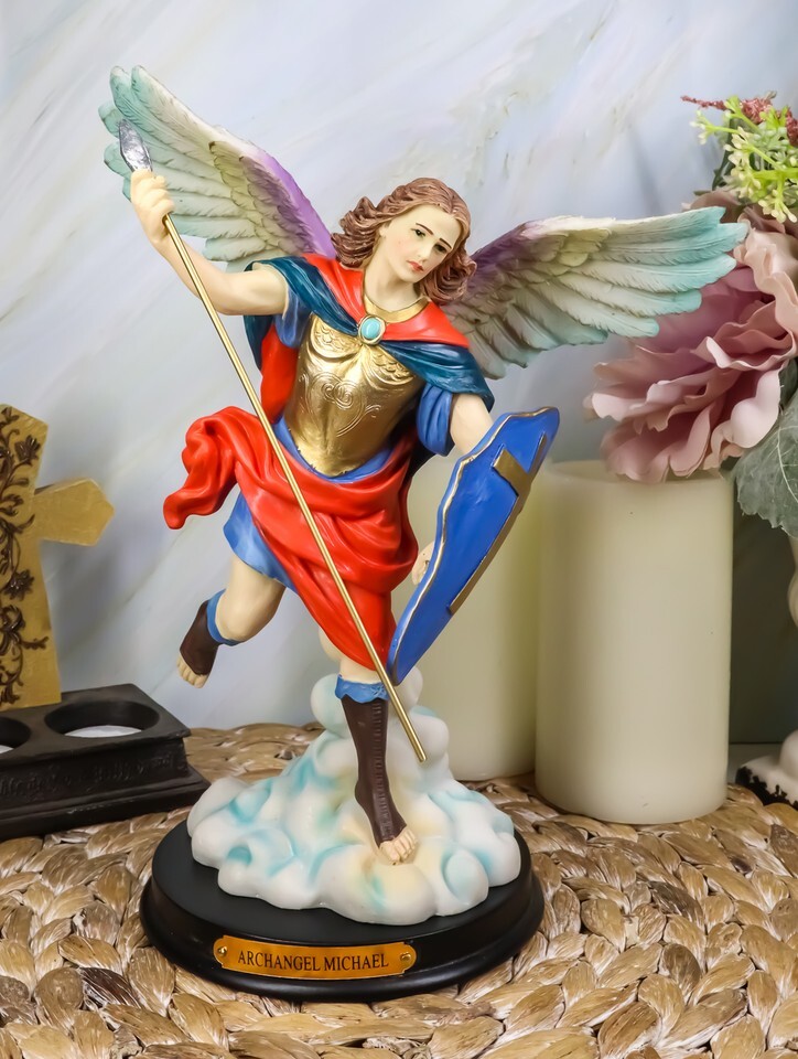 Ebros Catholic Colorful Archangel Saint Michael With Javelin Spear Shield Statue 10"H