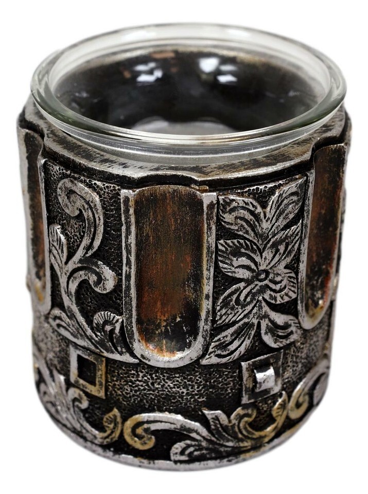 ? Illuminate your rooms with a Bang using these pistol barrel votive holders. Featuring 2 well detailed pistol barrels with unique floral scroll art, your votives will be housed in rustic wild west vibe!