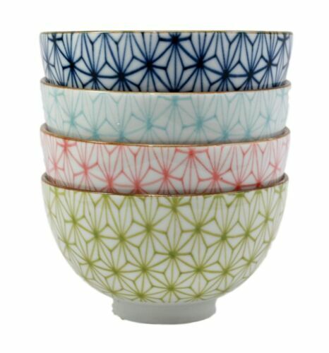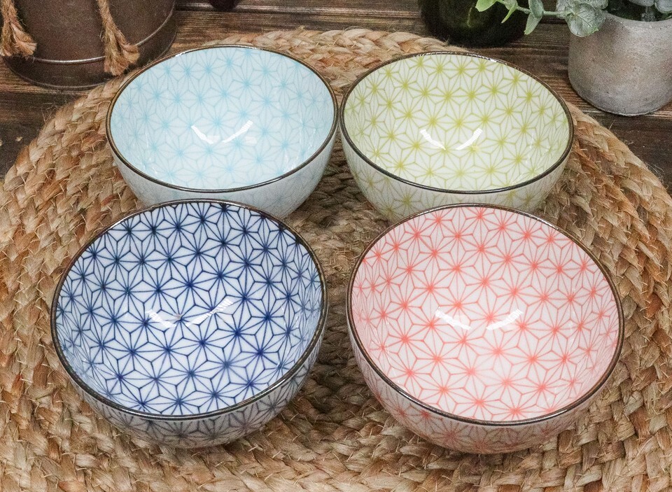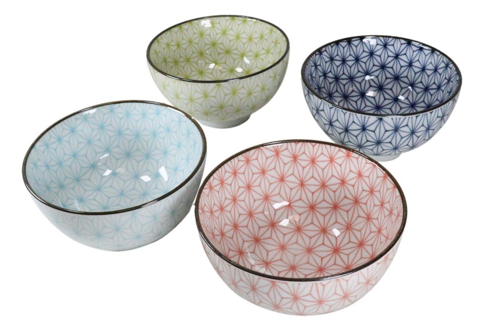 Matrix Polygon Colorful Japanese Bowls Food Safe 4.5"D Japan Made Bowl Set Of 4