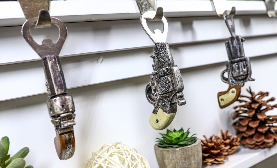 Ebros Pack Of 3 Western Cowboy Six Shooter Revolver Gun Pistols Beer Bottle Openers