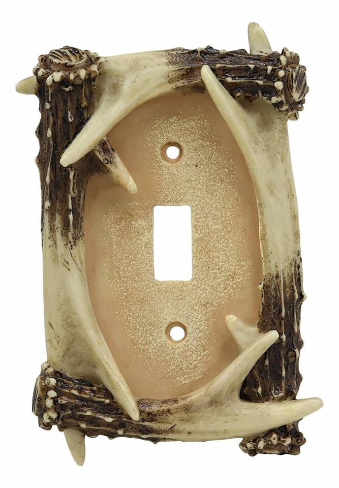 Ebros Set of 2 Woodland Rustic Deer Antlers Wall Single Toggle Switch Cover