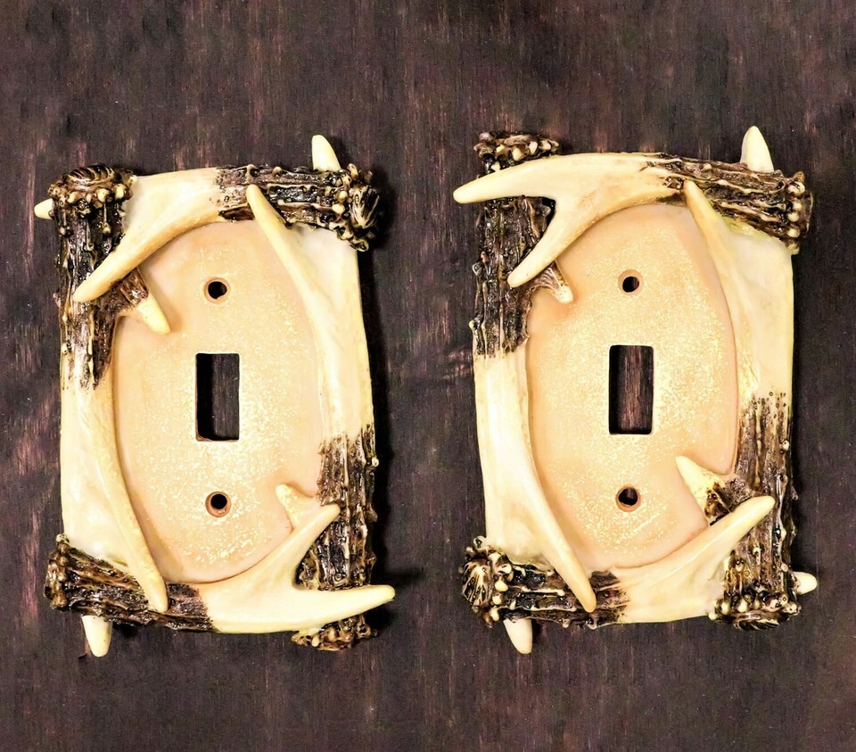 ? It is now very easy to transform your space at your home or office into a rustic Western exotic getaway with these deer antlers electrical cover plates. This particular electrical plate cover features 4 defined interlocking deer antlers, covering each side of the borders.