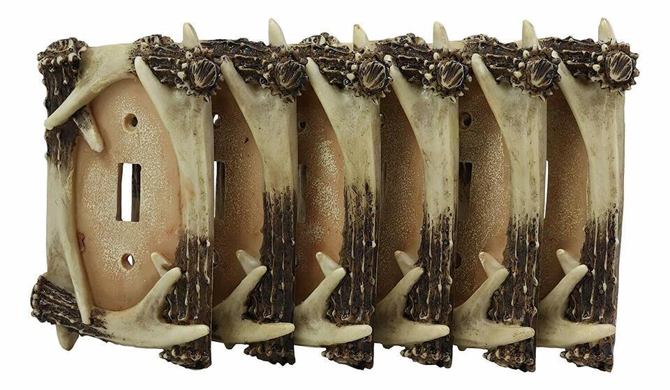 Ebros Set of 6 Rustic Stag Deer Antlers Wall Cover Plate Single Toggle Switch