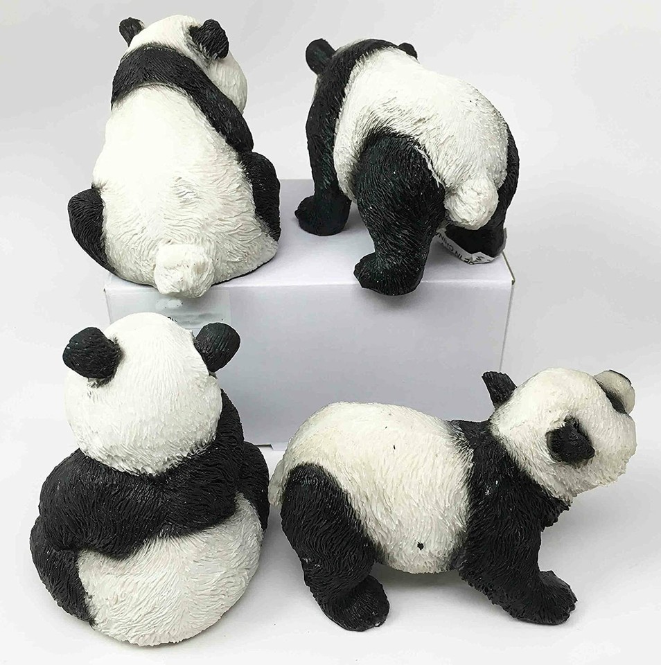 Wildlife China Giant Panda Bear Family Figurine Collectible Sculptures Set Of 4