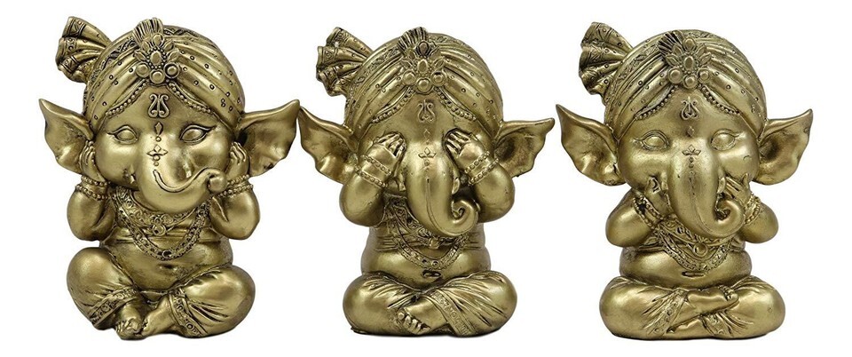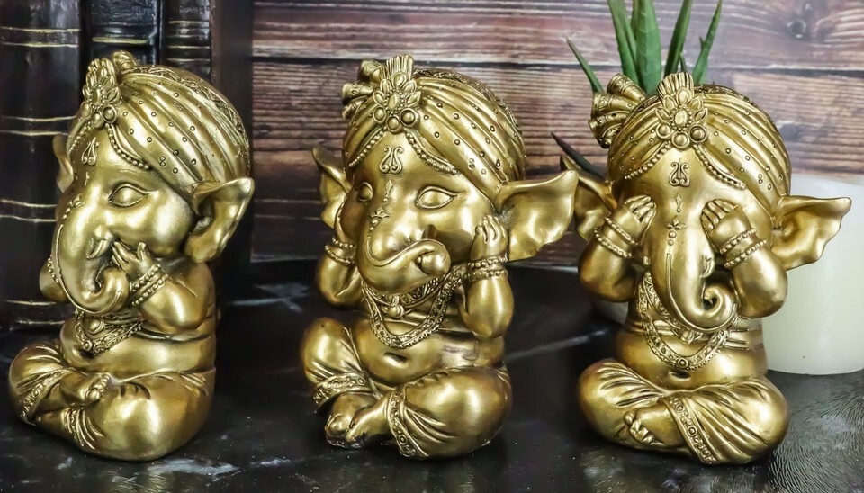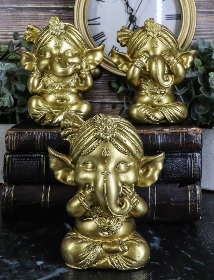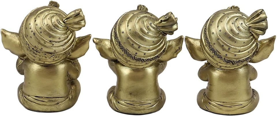 Ebros Set of 3 See Hear Speak No Evil Ganesha with Turban Figurines 4" Tall