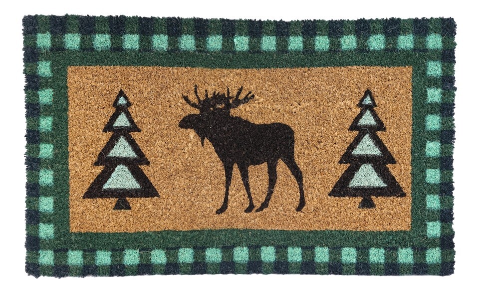 ? Its beginning to feel a lot like Christmas! Especially when you put an emperor stag moose, Christmas trees and square blocks in different shades of green on a floor mat at your front entry. It is definitely festive in spirit and warm as in all rustic 'homy' designs.