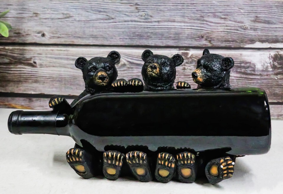 ? Add a touch of rustic charm to your home with our Whimsical Three Black Bears Wine Bottle Holder. This enchanting wine bottle holder features three adorable black bears playfully hugging a bottle, seated side by side, seamlessly blending woodland whimsy with functionality. Crafted with intricate detail, these charming forest critters bring a warm, cozy feel to any setting.