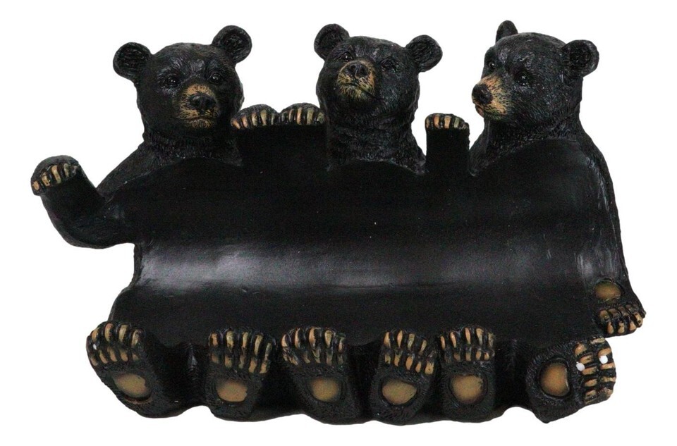 Rustic Western Forest Animal Whimsical 3 Black Bears Wine Bottle Holder Decor