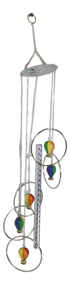 ? Elevate your outdoor space with our hot air balloons wind chime, a symphony of whimsy and vibrant hues that will enchant both the eyes and ears. Crafted with meticulous attention to detail, each hot air balloon is a miniature masterpiece, painted in a kaleidoscope of cheerful colors that dance in the sunlight. The metal chimes suspended amongst the hot air balloons create a melody that resonates with every gentle breeze, turning your garden or patio into a tranquil oasis of sound and color.