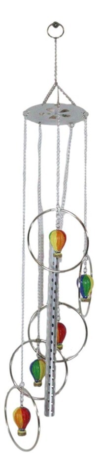 ? This Decorative Hot Air Balloon theme wind chime is approximately 23" Tall from the base of the rod to the top of the sculpture. The top crown diameter is 4.5". It weighs about 8 ounces.