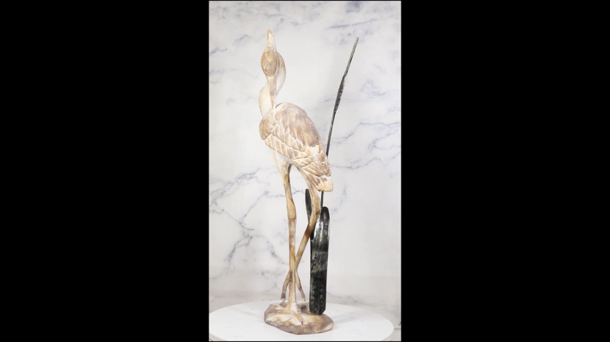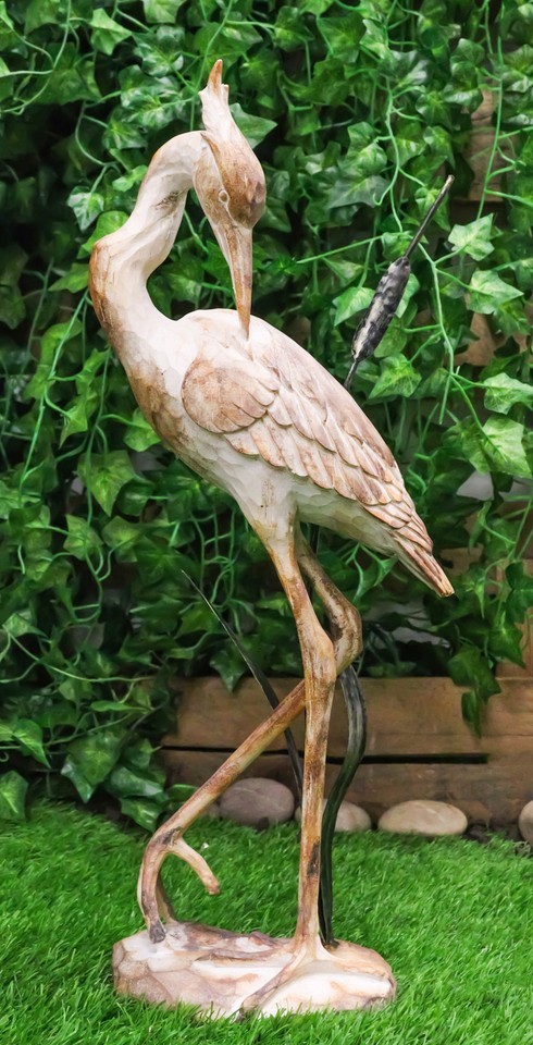 ? This Heron Statue is made of designer composite resin, hand painted and polished individually to resemble vintage distressed wood.