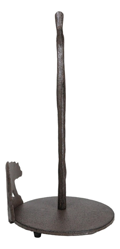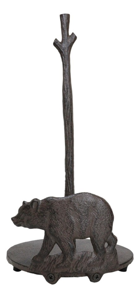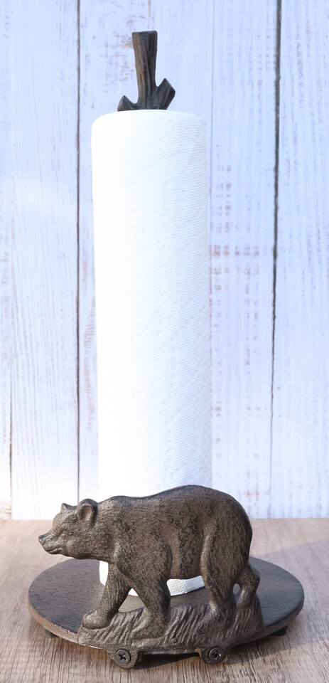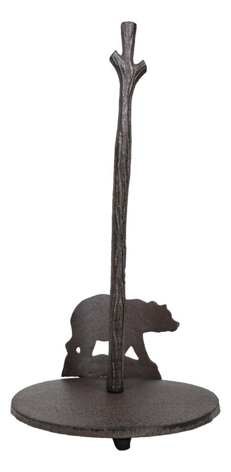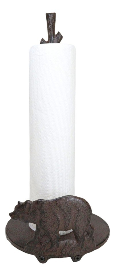 ? With a roaming bear by a tree twig branch design, the rust-finished cast iron metal Bear Paper Towel Holder adds rustic charm to your kitchen or bathroom.