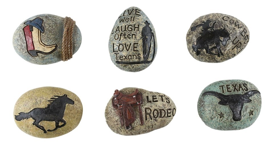 Set of 6 Western Texas Cowboy Longhorn Rodeo Horse Boot Colorful Pebble Rocks