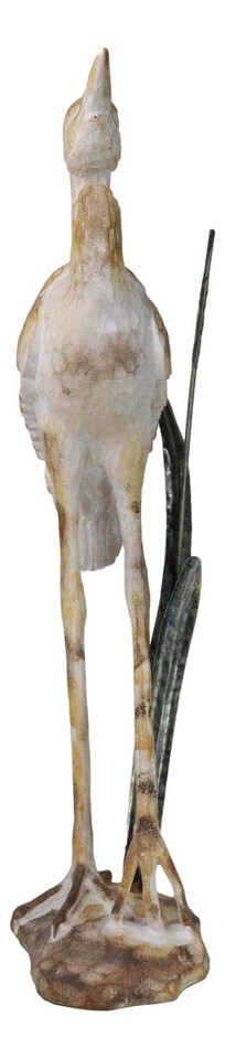 Large Marine Majestic Heron In Reeds Distressed Faux Wood Finish Sculpture 24"H