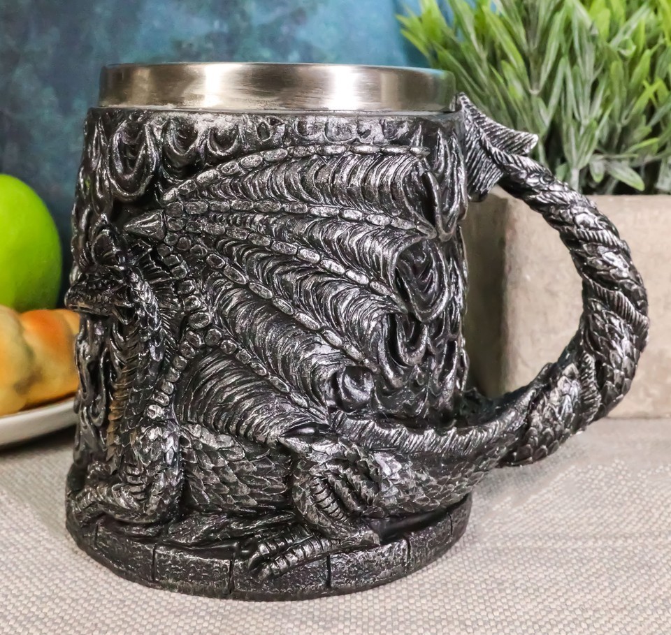 Ebros Medieval Flames Fire Dragon Mug Beer Stein Tankard Coffee Cup 5.75"Long