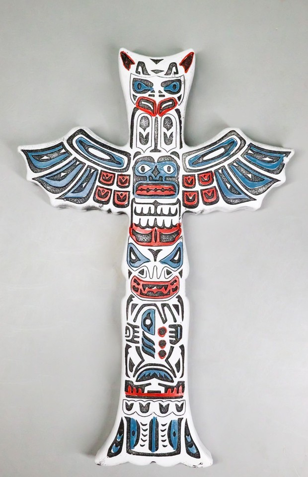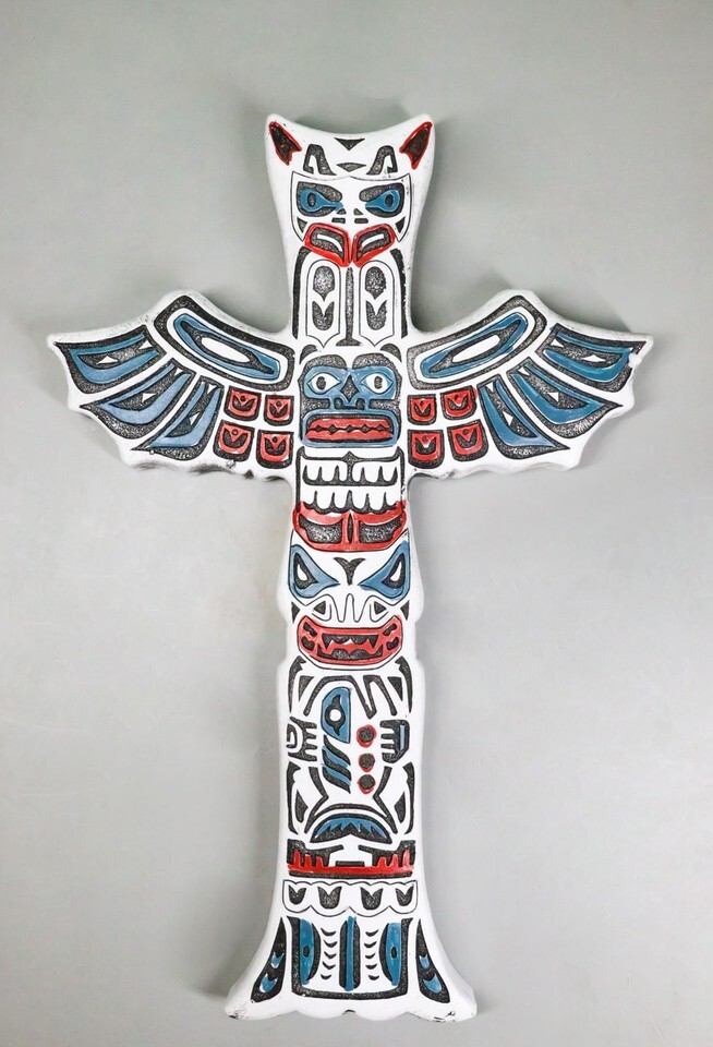 ? This Indigenous Animal Totem Pole Wall Cross Sculpture is made of high quality polyresin, hand painted and polished individually.