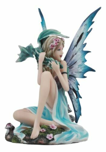 Ebros Water Elemental Fairy W/ Green Dragon Statue 7"H Whimsical Khaleesi Fairy