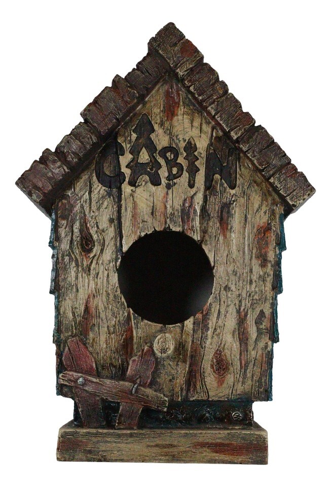 ? This Cabin Birdhouse Hanging Bird Feeder is made of the highest quality resin, hand painted and polished individually. It is finished to look like wooden sculpture.