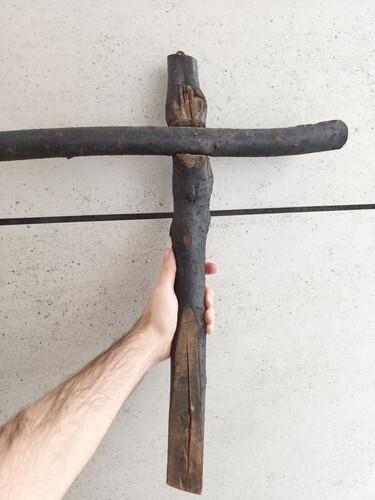 ? This Faux Wooden Wall Cross Sculpture is made of polyresin, hand painted and polished individually to resemble wood.