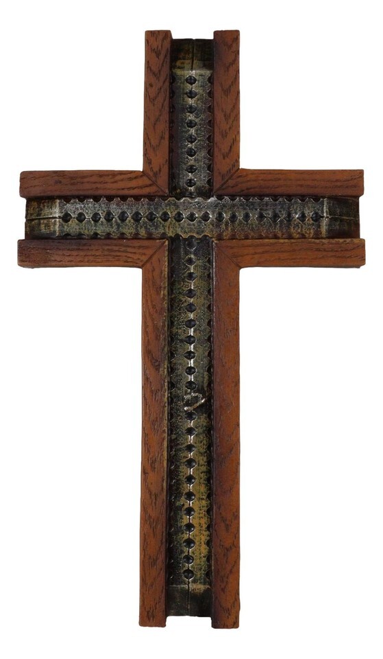 Rustic Western Wood Grain Pattern With Grey Silver Motif Faux Wooden Wall Cross