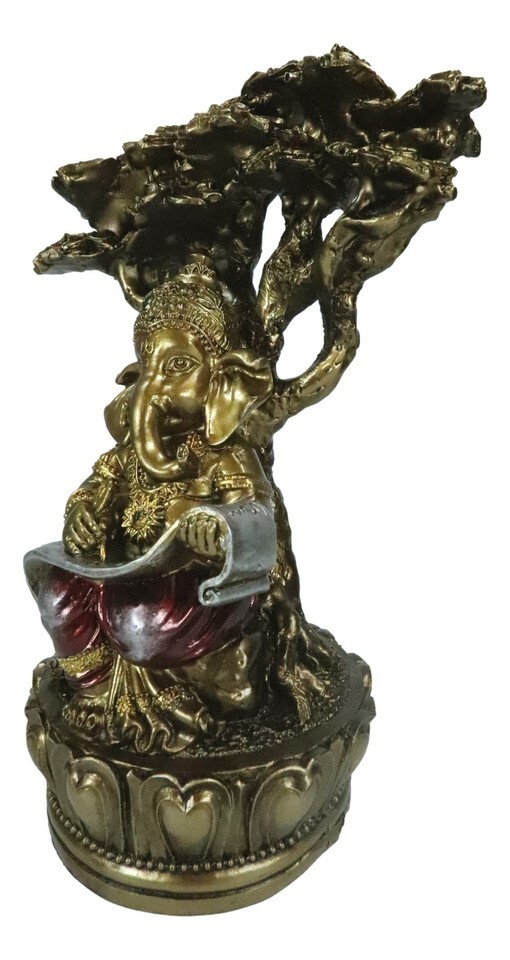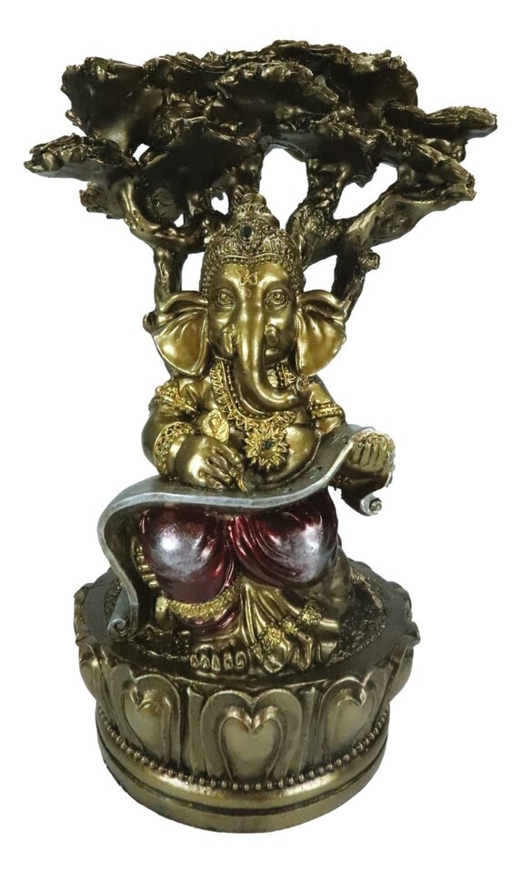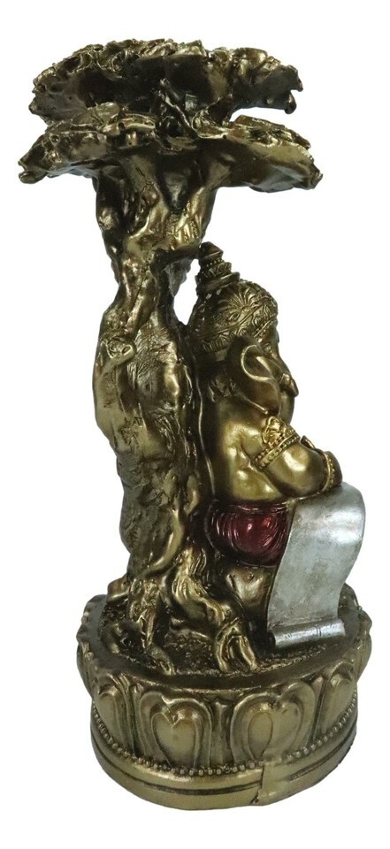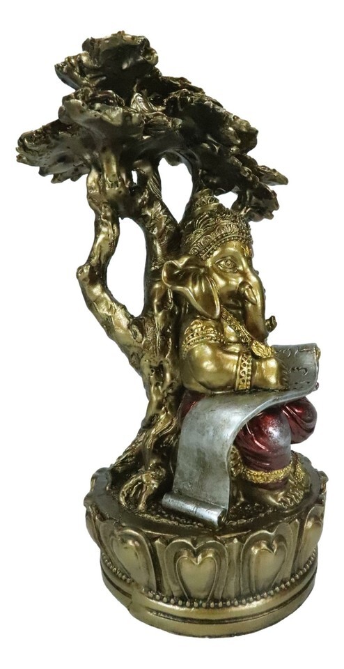 Vastu Hindu God Ganesha Writing Mahabharata Scrolls By Tree Of Life Figurine