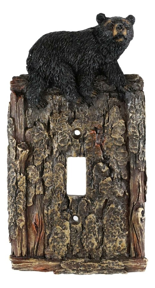 ? It is now very easy to transform your space at your home or office into a rustic Western exotic getaway with these bear electrical cover plates. Featuring a lazy black bear posing by a tree trunk bark. The wall plate is textured like a faux tree bark to add warmth and coziness to your nook!