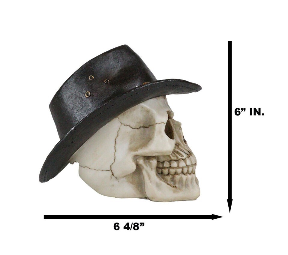 ? Are you ready to round up some truly ghoulish gunslingers and cowboys? With his intimidating snarl straight out of the Wild West comes this cowboy skull sculpture wearing a western hat.