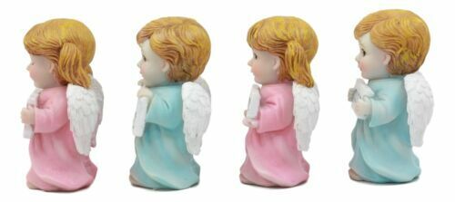 These Guardian Children Angels are the best inspirational gift or decor for you or your loved ones. They encourage prayer, faith, to hope and believe in God's purpose for every individual. This figural angel set comes in two boy angels holding the signs "God Is Good" and "Faith Moves Mountains" and two girl angels holding signs that say "Child of God" and "Trust In The Lord".