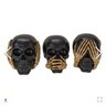 ? These skulls trio embody the classic "See no evil, hear no evil, speak no evil" proverb. Hand painted for a gothic black finish, their hands are finished in gold for a stark contrasting effect.