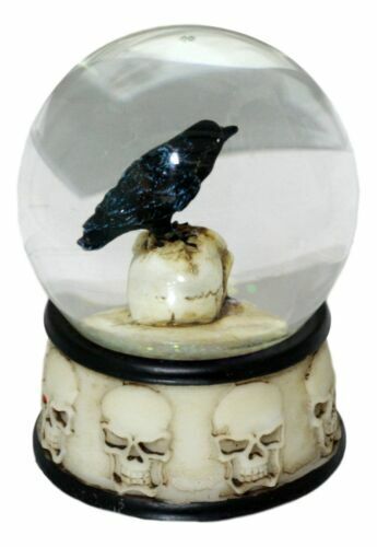 ? Are you looking for a unique gift or a collectible for yourself? This water globe is a nice candidate for you! It features a mysterious Raven standing on a skull. It is definitely a Halloween festive decor as well as a gothic accessory for any room.