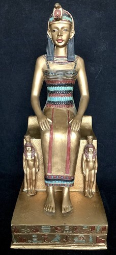 ? This Egyptian Cow Goddess Hathor Figurine is made of cold cast resin. Hand painted.