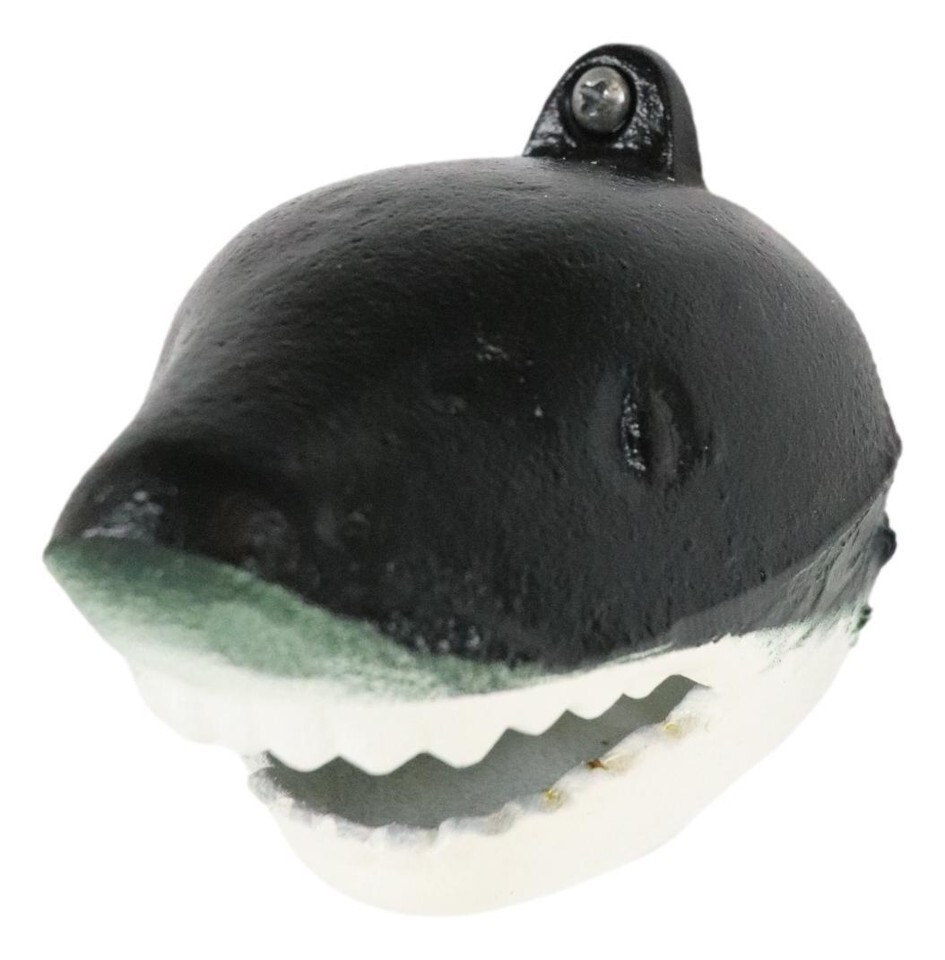 ? This Nautical Shark Wall Decor is made of cast iron, hand painted and finished individually. Please be sure to anchor the screw for mounting if you are mounting the bottle opener against your sheet rock wall.