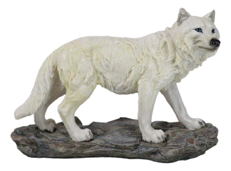 Woodlands Winter Hunter Tundra Snow White Albino Wolf On The Prowl Figurine